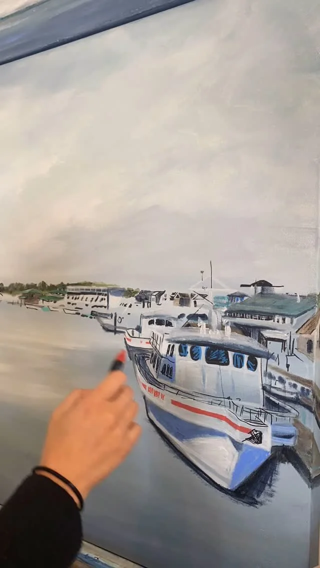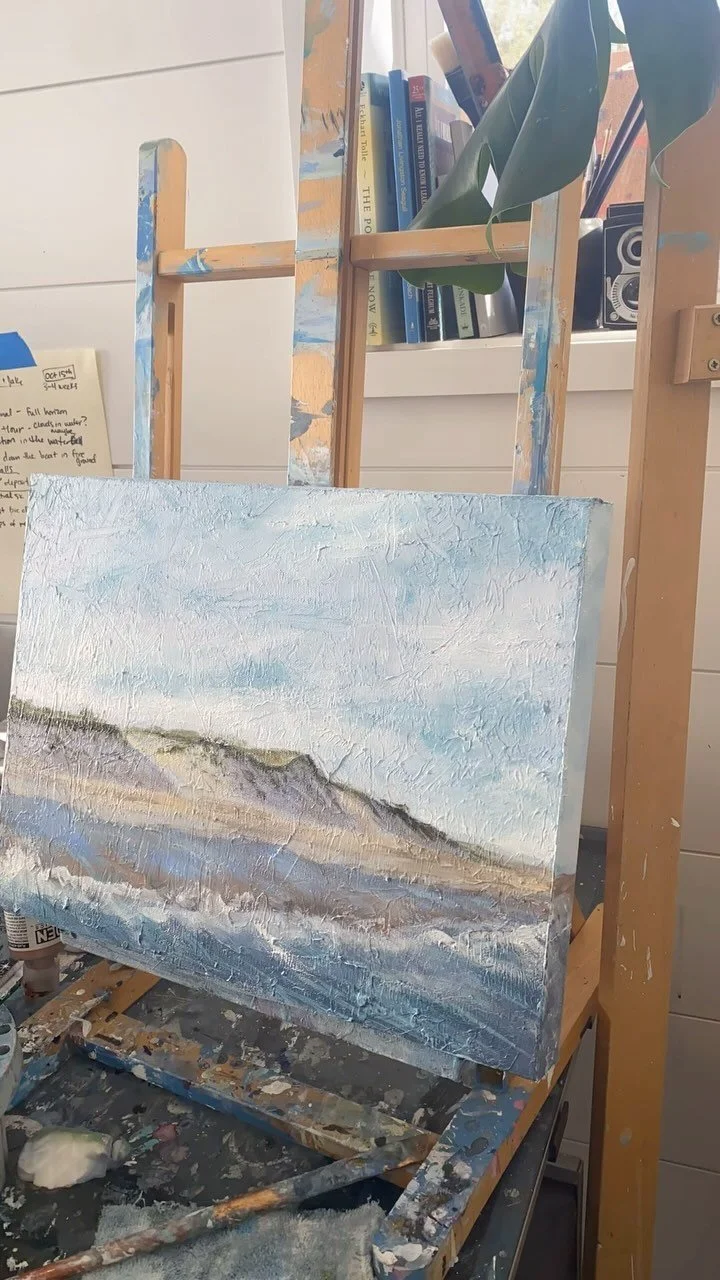 The periwinkle tree line on the horizon, a signature element of my work, reflects the essence of Rehoboth Beach’s natural beauty.